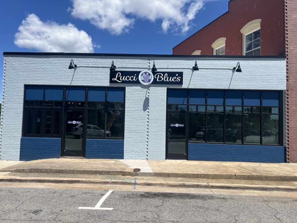 The former smaller plumbing area remained vacant until the current renovation of 2025. Kim and Lyle Blue, residents of Fuquay-Varina for 25 years, had dreamed of opening a cafe. She saw the former Blanchard’s Plumbing site as one to house Lucci Blues Social Cafe opening in June of 2025. Kim has kept the old coal shute as a “wine window”